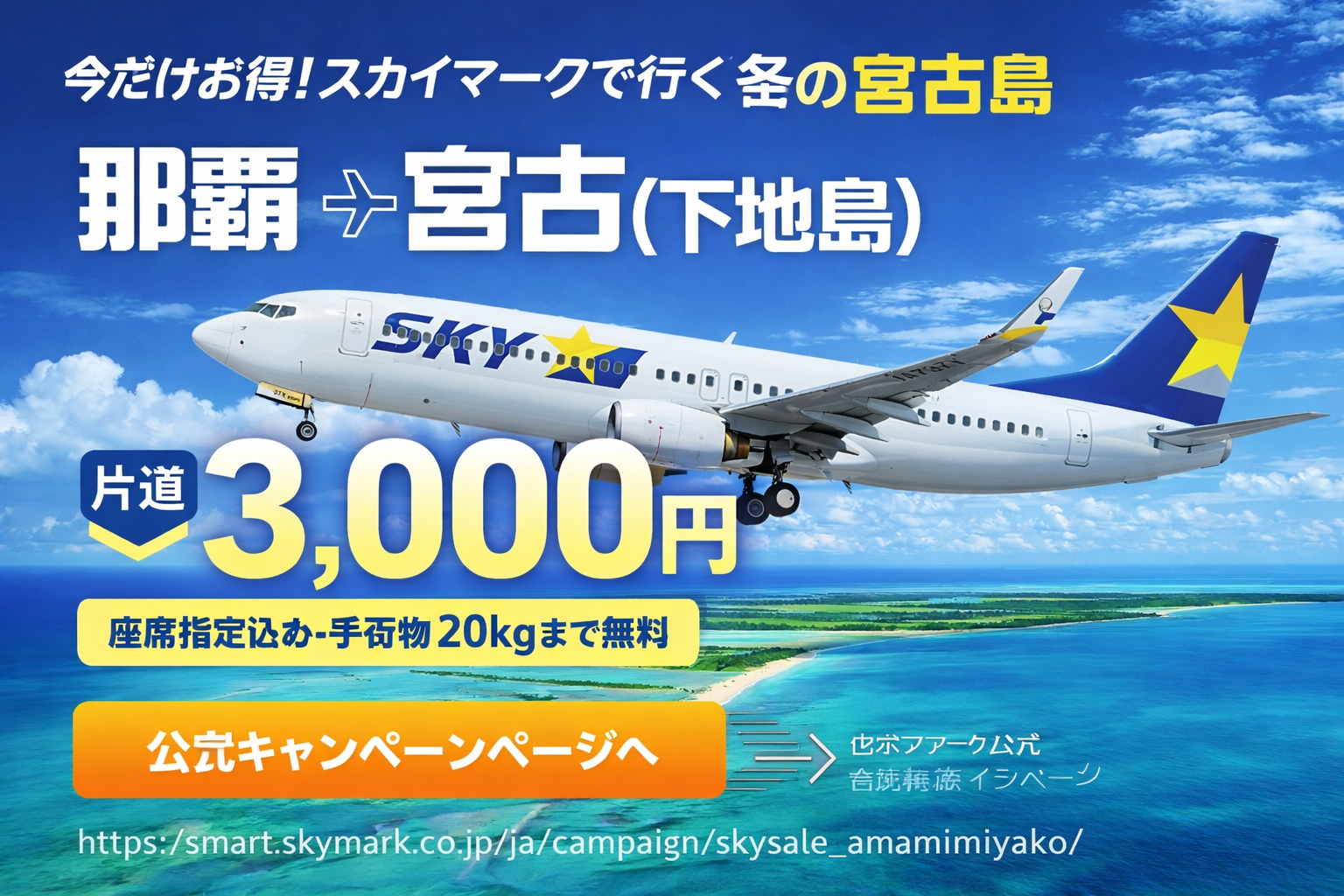 🛫 スカイマーク那覇〜宮古(下地島)3000円セール…