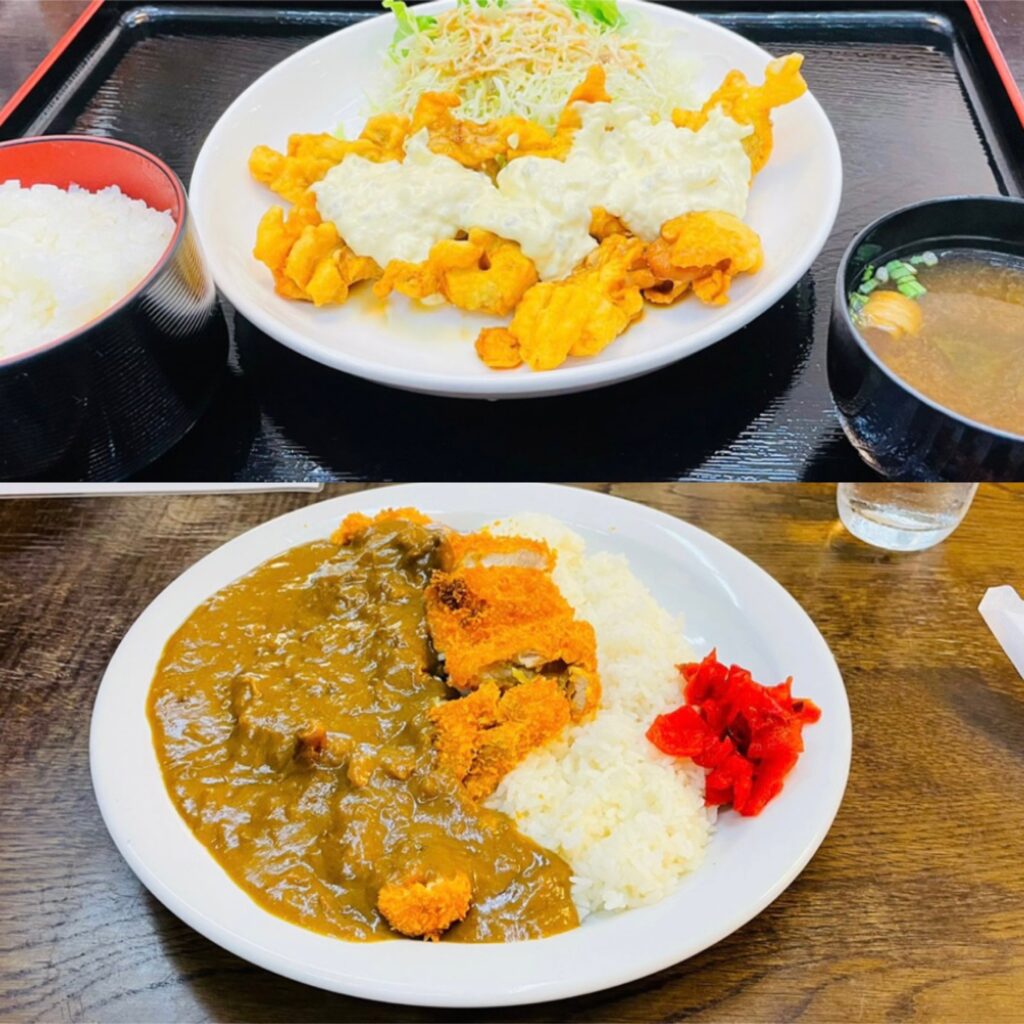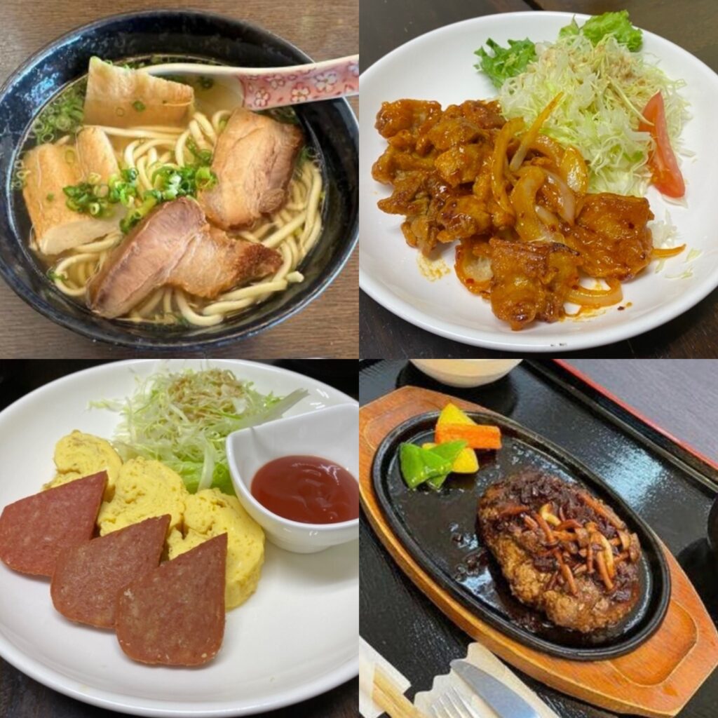 看板メニューは、宮古そば・チキン南蛮定食・カツカレーなどボリューム満点の定食メニュー。