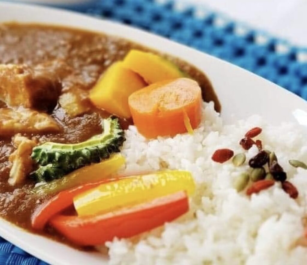 伊良部島・佐和田の浜を一望できる「島野彩カフェ 龍(りゅう)」は、宮古島産の野菜を中心に、体にやさしい薬膳料理や島野菜カレーを味わえる人気カフェレストランです。