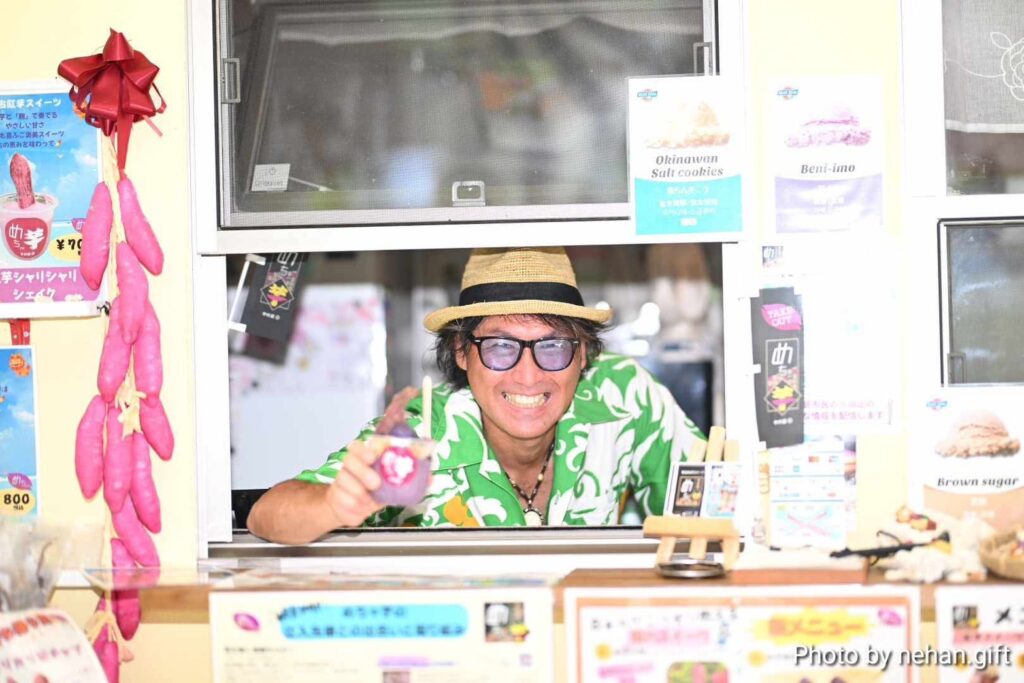 コンテナ風の外観が目印で、南国らしい風に吹かれながら、こだわりの紅芋スイーツをゆったりと味わえます。