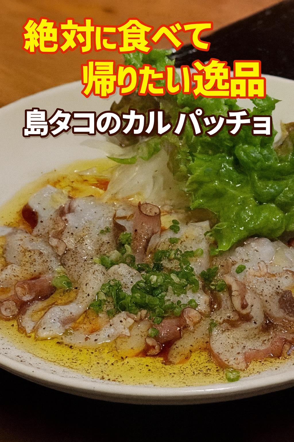 宮古島のグルメを語るなら、この「島タコのカルパッチョ」は絶対に外せません。見た目の華やかさに反して味わいは繊細で、噛むほどに“宮古の海”を感じられる逸品です。旅行者にも地元の人にも愛され続ける“本物の地魚料理”として、ぜひ味わってほしい一皿です。