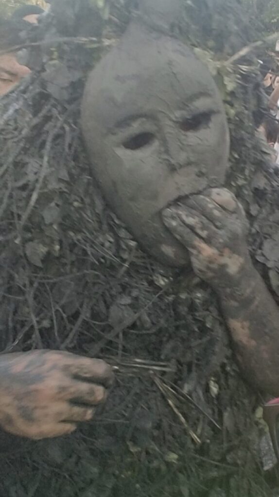 祭祀当日、パーントゥは全身に泥を塗り、ツル草の衣をまとって集落に現れます。