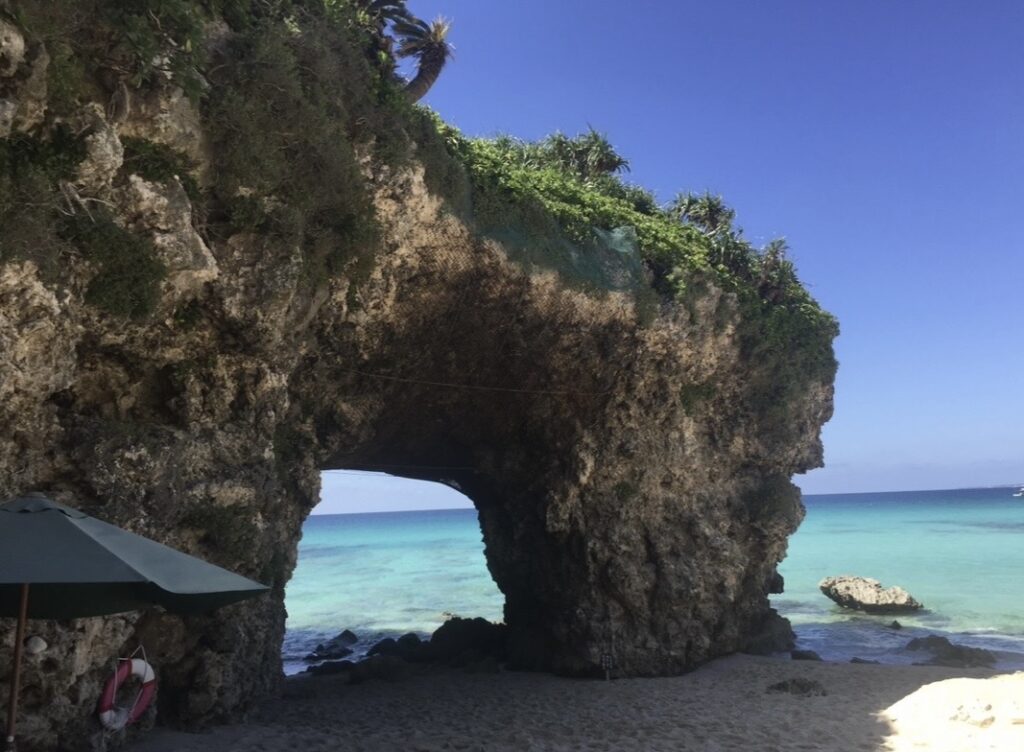 砂丘を越えた先に現れる、宮古島屈指の絶景ビーチ。自然が作り出した岩のアーチと透明度の高い海が広がる、写真映えでも人気のスポットです。