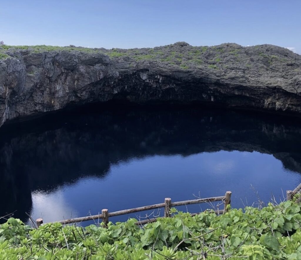 海と地下でつながる神秘的な二つの池。下地島を代表する自然のパワースポットで、ダイナミックな地形と深い青の水面が印象的な人気観光地です。