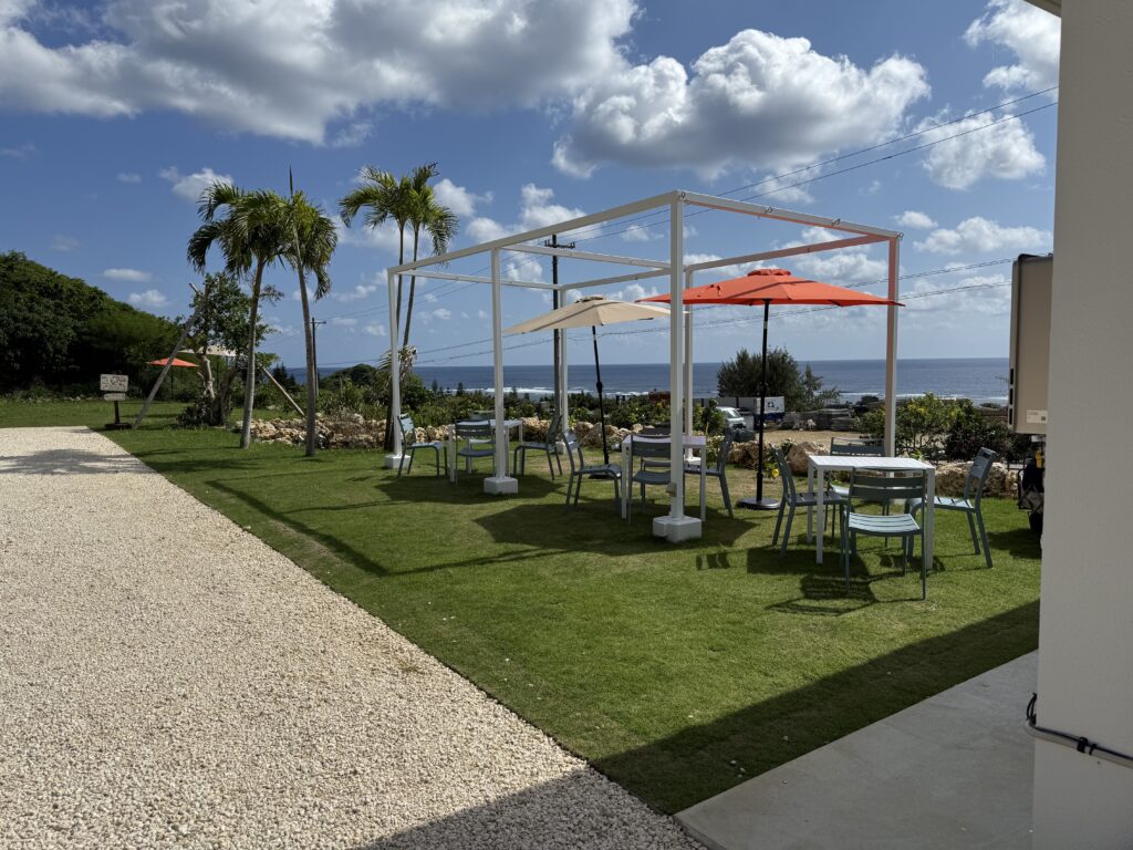 城辺砂川の高台に2025年10月にオープンした「POKE Fai(ポケファイ)」は、全席から青い海を望むことができる、まさに“海の見えるポケカフェ&リゾートバー”。