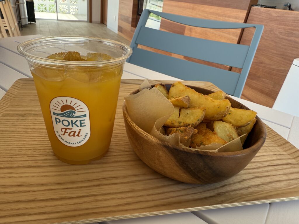 天気の良い日は、ポケ丼+ドリンクで“青”の景色を独り占め。まさに宮古島らしい贅沢なランチタイムです。