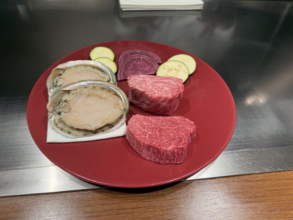 🥩 “鮑 × もとぶ牛 × 特選沖縄県産牛サーロイン&フィレ”は外せない一皿