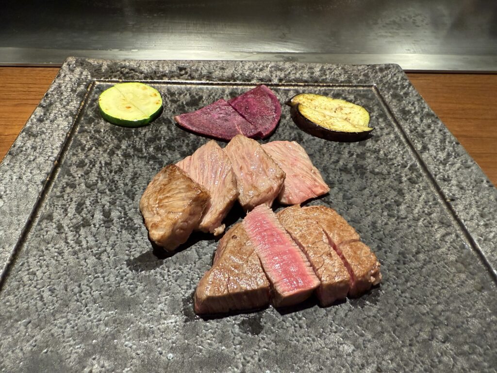 シギラブルーの真骨頂は、鉄板の上で繰り広げられる“食材と香りのライブ”。中でも鮑と牛肉の贅沢な組み合わせは、宮古島旅行の夜を特別な思い出に変えてくれる主役級の存在です。