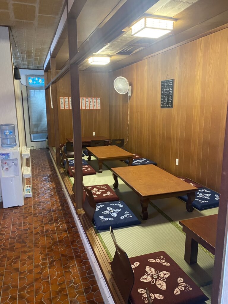 宮古島の夜にそっと灯る暖簾が目印の「とよまつ食堂」。夜21時から翌3時まで営業し、仕事終わりの地元客や旅行者を優しく迎えてくれる深夜食堂です。店内は昭和の香りが残る落ち着いた和の空間。座敷席とカウンター席があり、ひとり呑みから仲間との食事まで気兼ねなく楽しめます。