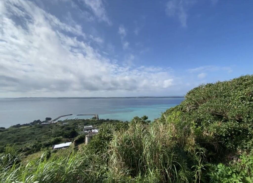 A. はい。遠見台は島の中心部の高台にあり、周囲の海と宮古島・池間島などの島々をぐるりと見渡せる絶景ポイントです。晴れた日は特に見晴らしがよく、宮古ブルーの海を一望できます。