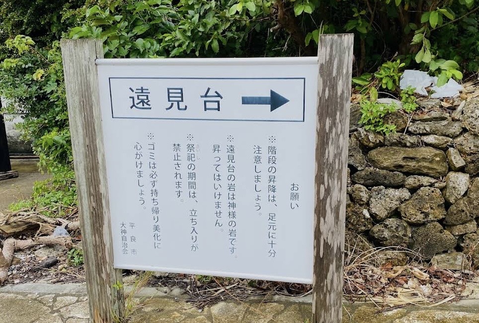 島の中で最も眺望の良い場所のひとつで、頂上に立つと 360°ぐるりと海に囲まれた大神島ならではの絶景 を楽しむことができます。