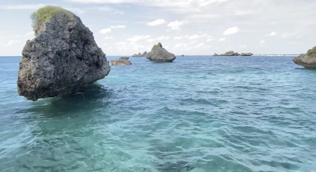 奇石エリアは島の海岸沿いに点在しており、