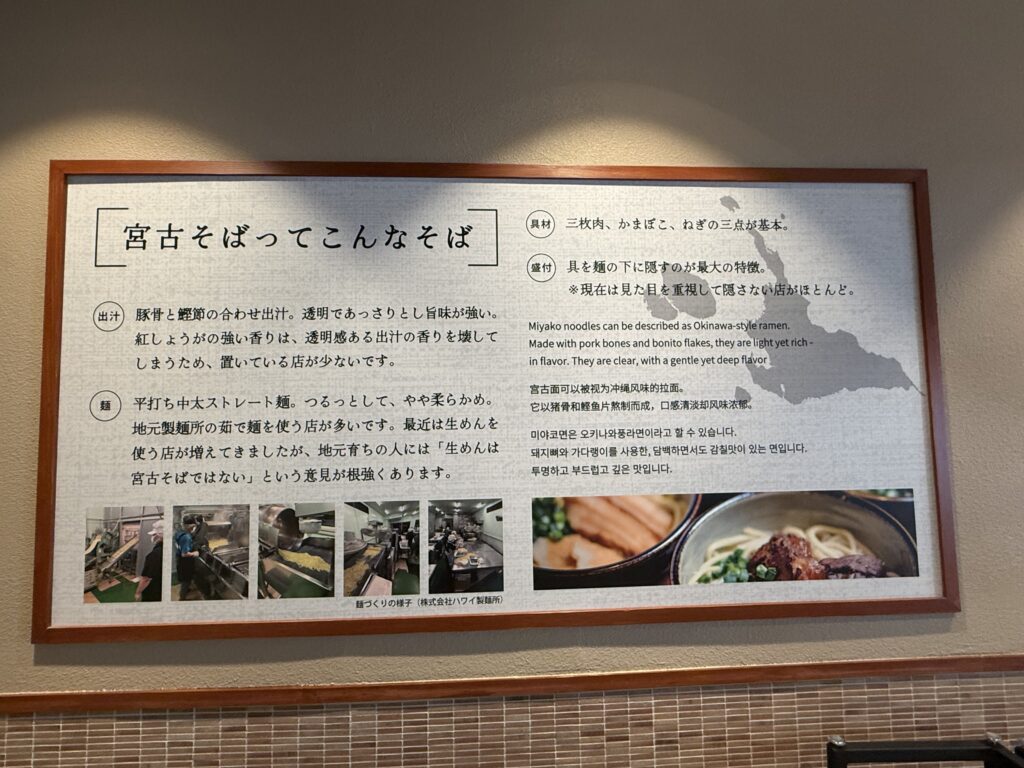 店内には、宮古そばの特徴や食べ方の案内が分かりやすく掲示されており、宮古そばデビューの方でも安心。