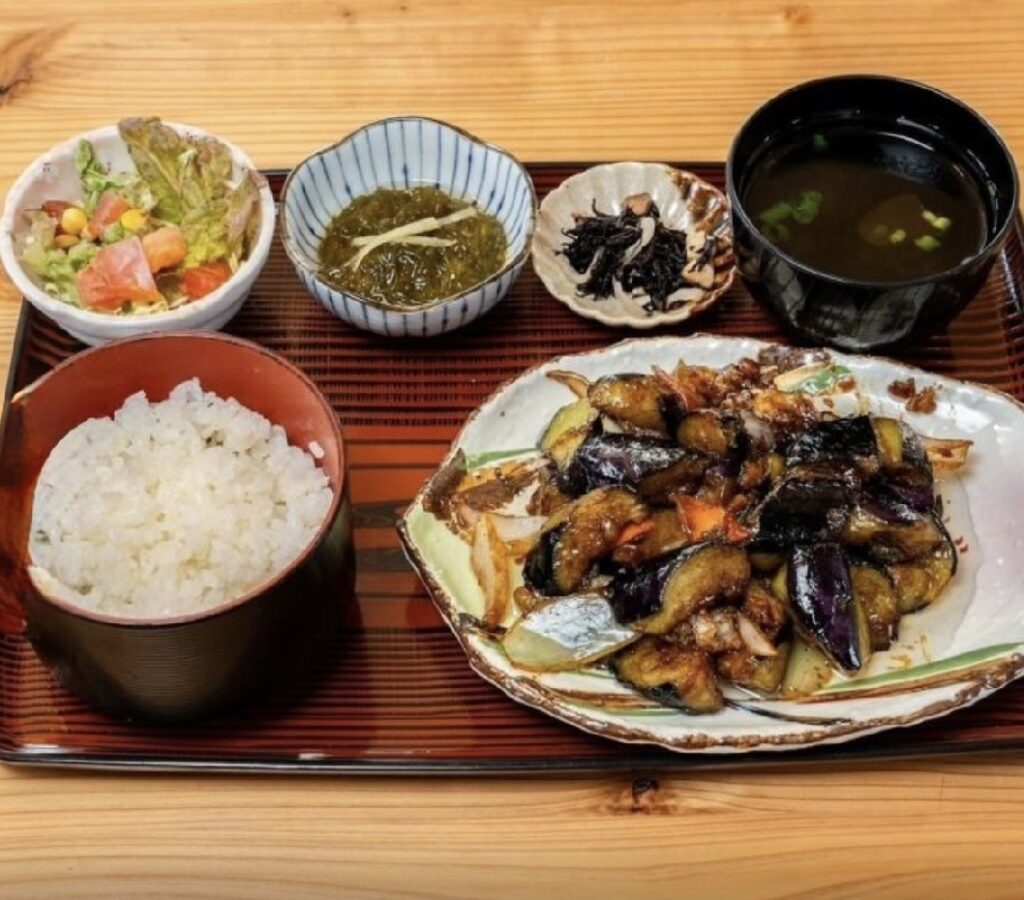 香ばしく炒めたナスに、コクのある味噌ダレが絡んだ人気メニュー。