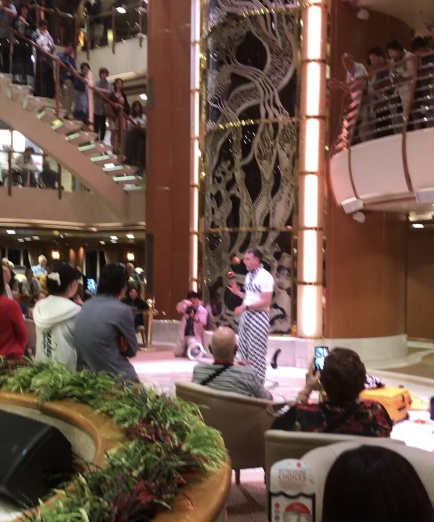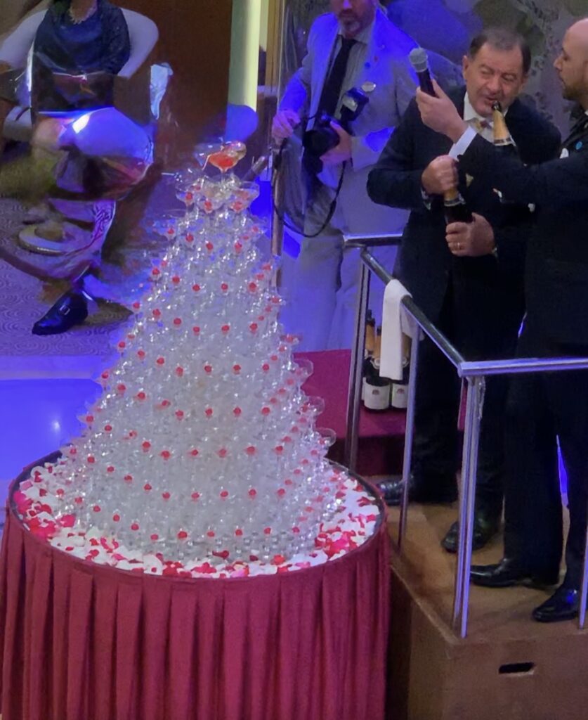シャンパングラスタワーのセレモニーや、夕陽に染まる甲板の景色、ショーが行われるシアターなど、1日中どこかでイベントが行われていて「船にいるだけで旅が完結する」感覚を味わえます。