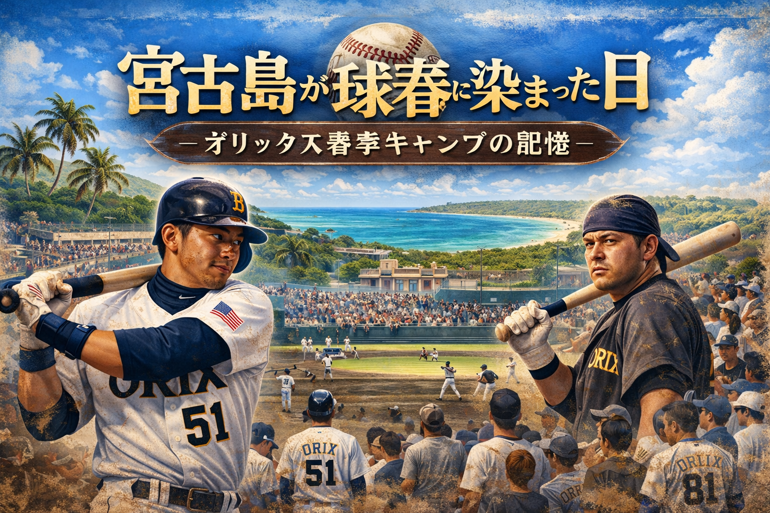 1990年代から2014年,宮古島の二月はプロ野球キャンプで動いた。オリックスの春季キャンプは冬の経済を起こし,島の時間感覚を変え,子どもたちの夢を現実にした。イチローの華,清原の重さ。橋がなかった離島性と,人の距離が近い島の作法。海だけでは語れない宮古島の記憶を,史料と回想で辿る保存版読み物。