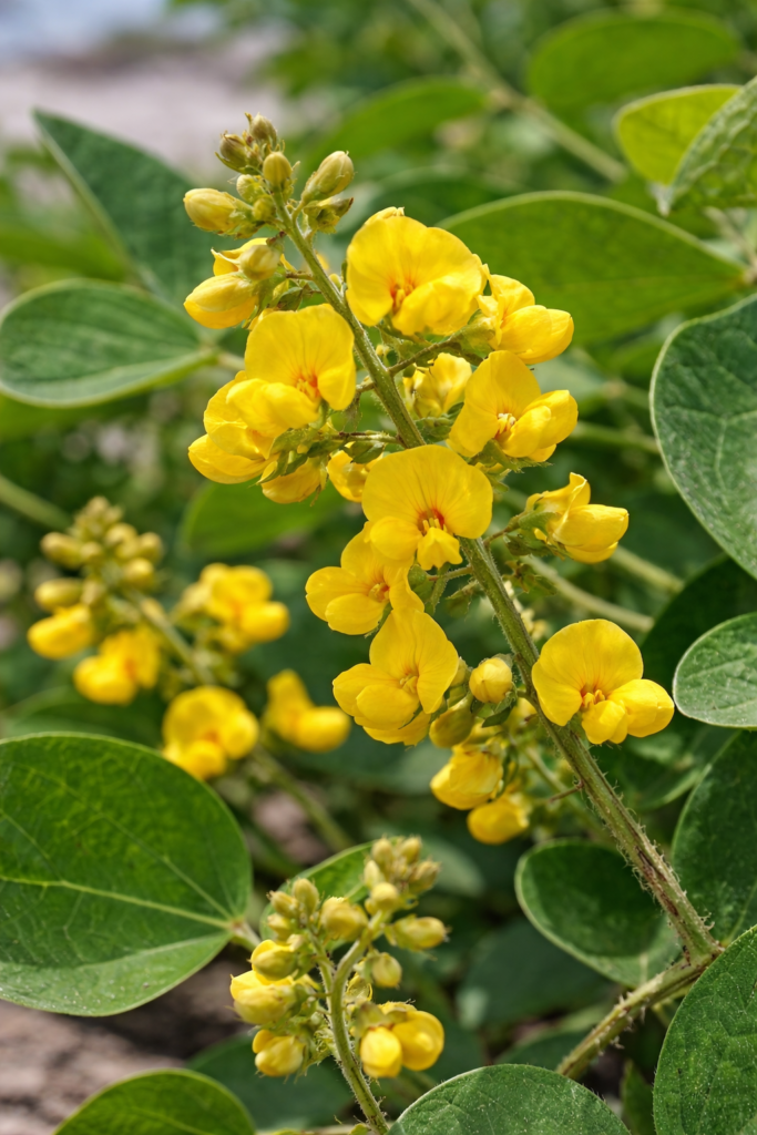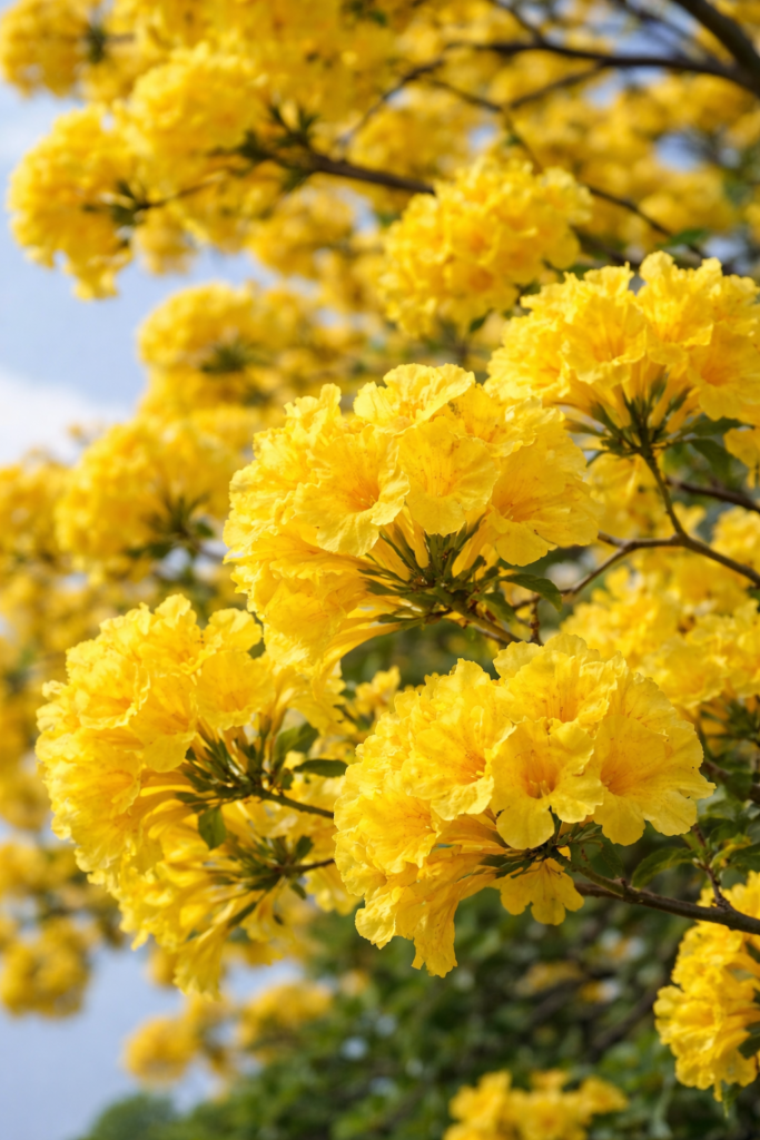 春の宮古島でひときわ目を引くのが、鮮やかな黄色い花を咲かせるイッペー(コガネノウゼン)。