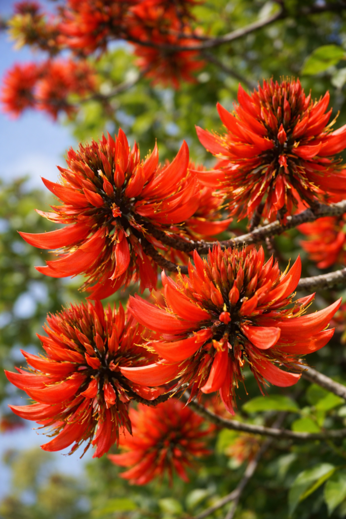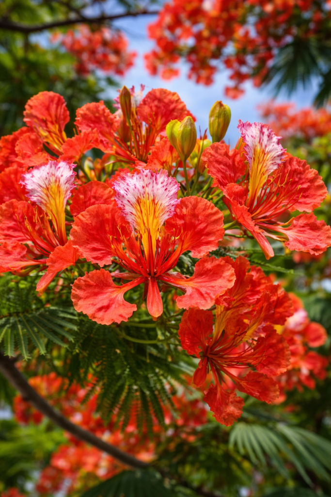 沖縄の県木としても知られ、青空の下で燃えるように咲く姿は、南国らしい迫力と美しさがあります。