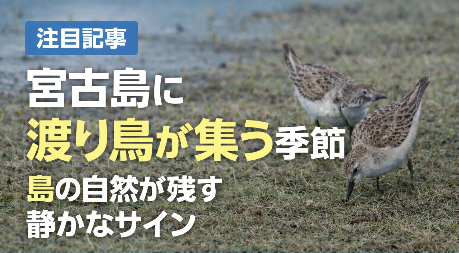 観光の合間に、足元を見てみてください。静かな草地や干潟に、季節の物語が息づいています。宮古島は“見る島”であると同時に、“通過点として支える島”。渡り鳥が教えてくれるのは、派手さではない、本来の島の価値です。