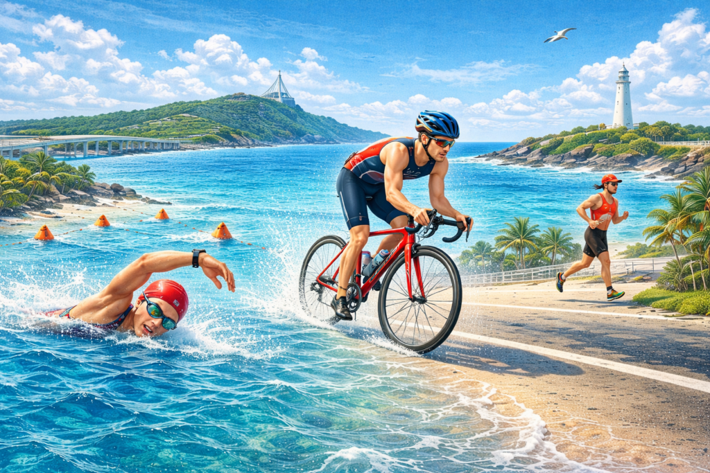 宮古島トライアスロンの魅力は、競技の厳しさと景観の美しさが同居している点です。