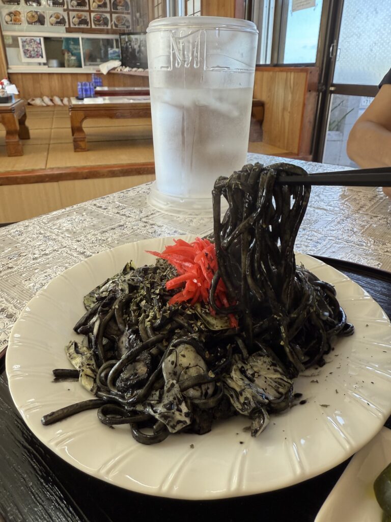 ほかにも、「墨入りタコそば」は宮古そばにタコ墨を溶かし込んだスープを使用し、炒めたタコをトッピング。そばの風味と墨のコクが一体となったオリジナルな味わいで、他では味わえない一杯として話題です。