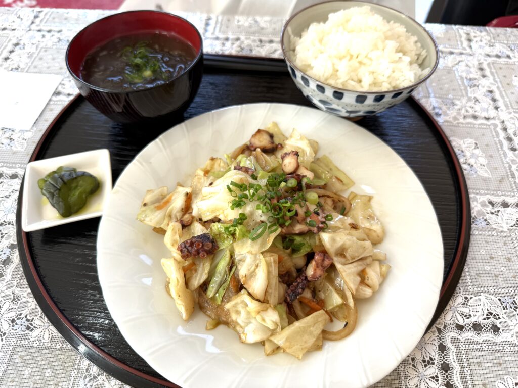 また、炒めたタコをメインにした「タコ炒め定食」や「タコ墨焼きそば」も人気。どれを食べてもタコの旨さがダイレクトに伝わってきて、まさに“タコ尽くし”を楽しめるラインナップとなっています。
