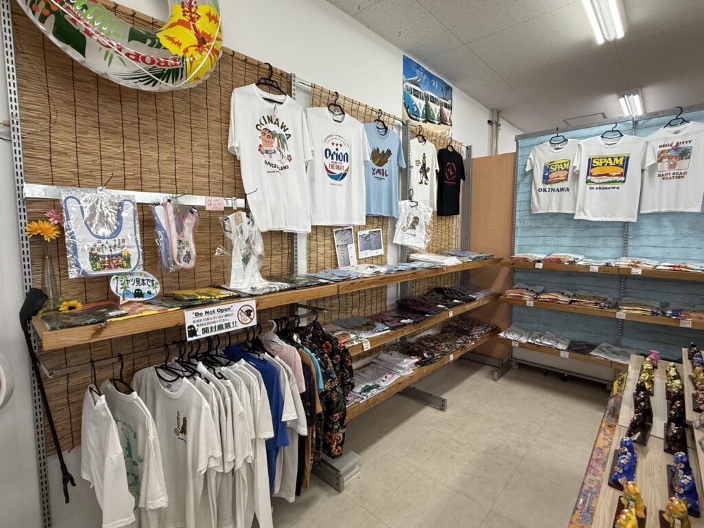 はい。シーサー雑貨、アクセサリー、Tシャツなど、観光の記念になるアイテムも販売されています。見て回るだけでも楽しめるコーナーです。