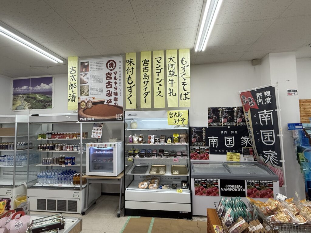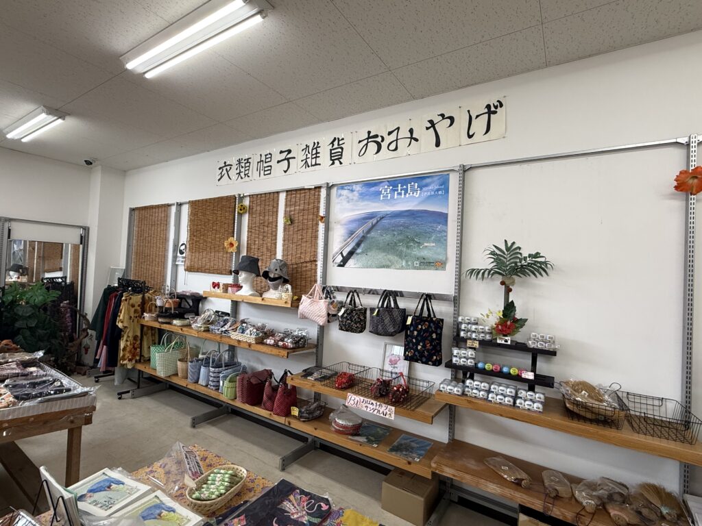 さらに、お土産コーナーも想像以上に充実。お菓子や食品だけでなく、南国モチーフの雑貨、キーホルダー、アクセサリー、Tシャツなどの小物類まで揃い、何気なく見ているだけでも楽しい空間です。大型土産店とは違う、素朴で温かみのあるセレクトは、宮古島の隠れ家的お土産物屋さんとして観光客にこそ立ち寄ってほしいポイントです。