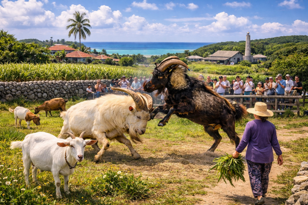 多良間島は「ヤギの島」と呼ばれるほどヤギの存在が身近です。かつては人よりヤギが多かった時代もあり、現在でも集落周辺や畑道で普通に見かけます。ヤギは食文化や行事とも結びつき、島の象徴的存在。闘ヤギ大会は島民が集まる大切なイベントです。