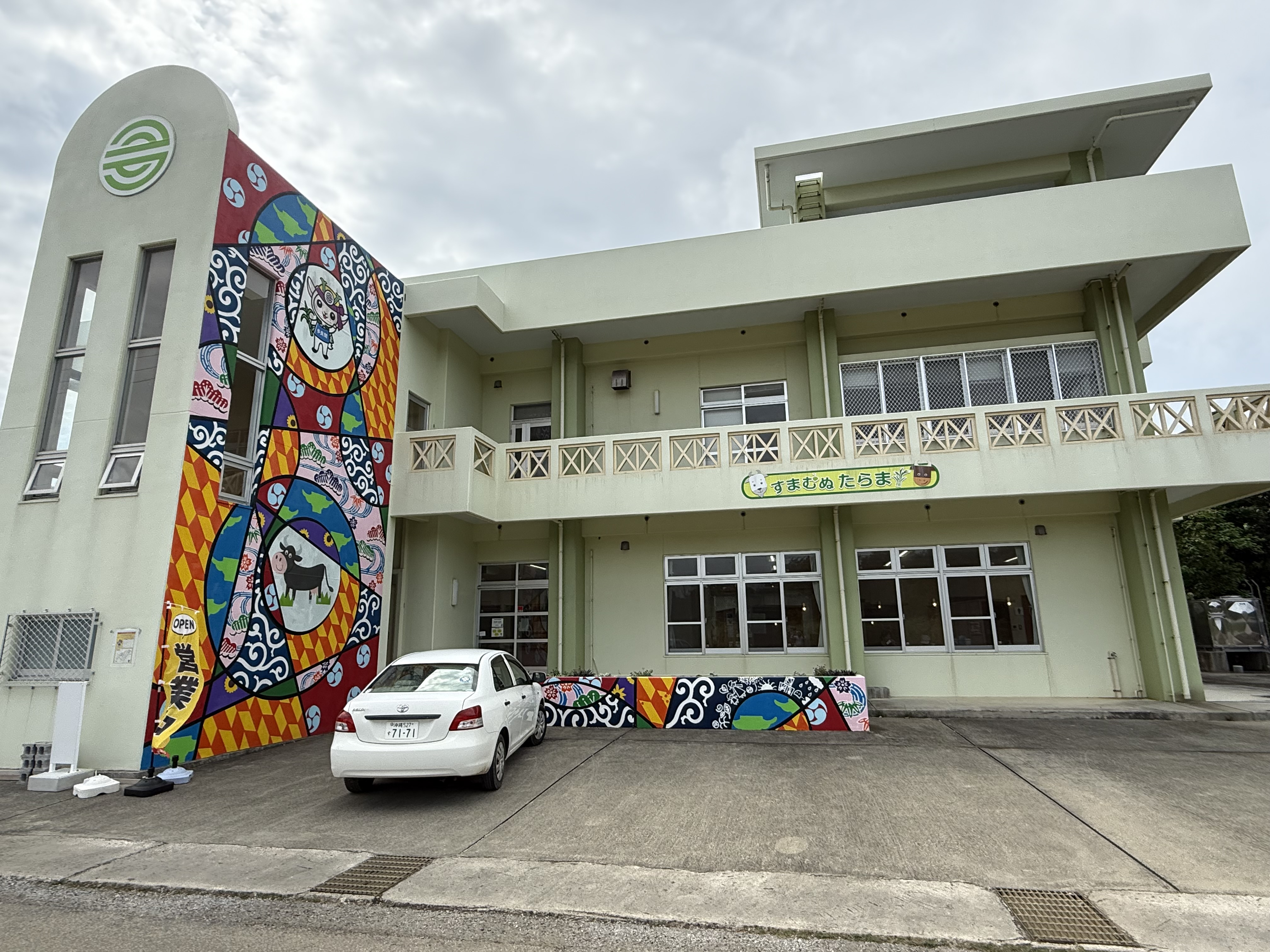 色鮮やかな壁画が印象的な建物は、多良間島らしい文化や自然をモチーフにしたデザイン。到着した瞬間から「離島に来た」という実感を与えてくれます。
