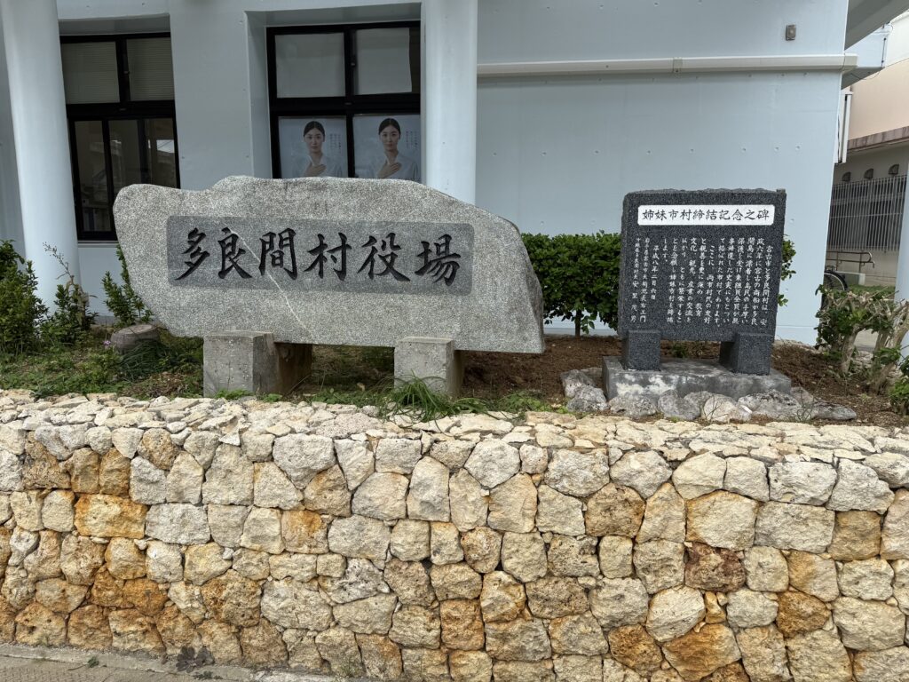 - 庁舎名の石碑(多良間村役場):到着記念の撮影にちょうどいい“島の玄関口”感