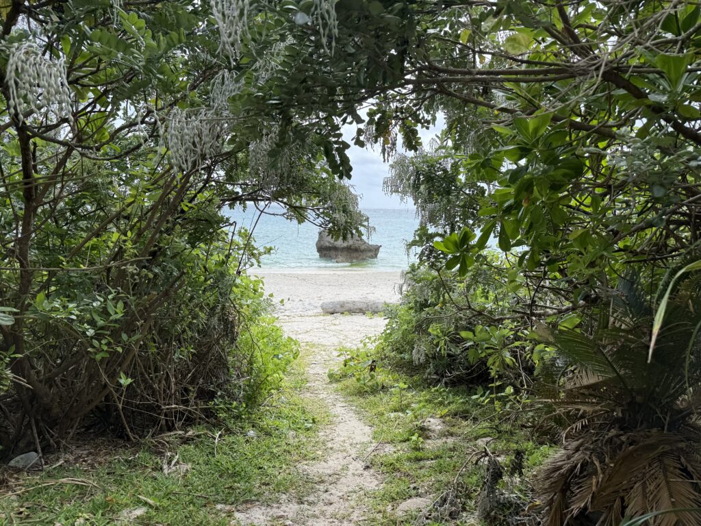 多良間島の海は、リゾートのように整えられた入口があるわけではありません。畑や集落の間から、すっと海へ通じる細道があり、潮の匂いが近づくほどに視界がひらけていく——その体験自体がトゥブリの価値です。