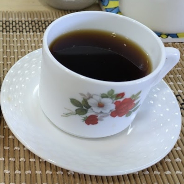 看板メニューの塩入りコーヒーは、ほんのりとした塩味がコーヒーの苦味と甘みを引き立てる独特の味わい。多良間島ならではの体験として人気があります。