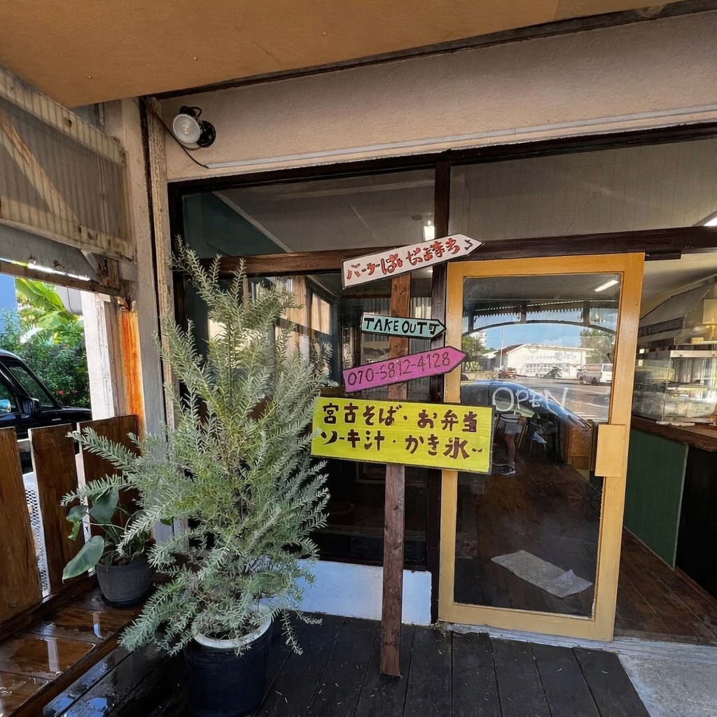 宮古島市平良下里にある**パーラーぱいながま笑店(しょうてん)**は、手作りカツカレーやお弁当、宮古そばなどを気軽に楽しめるパーラー。テイクアウトはもちろん、店内でのイートインも可能で、地元の人や観光客にも親しまれているお店です。