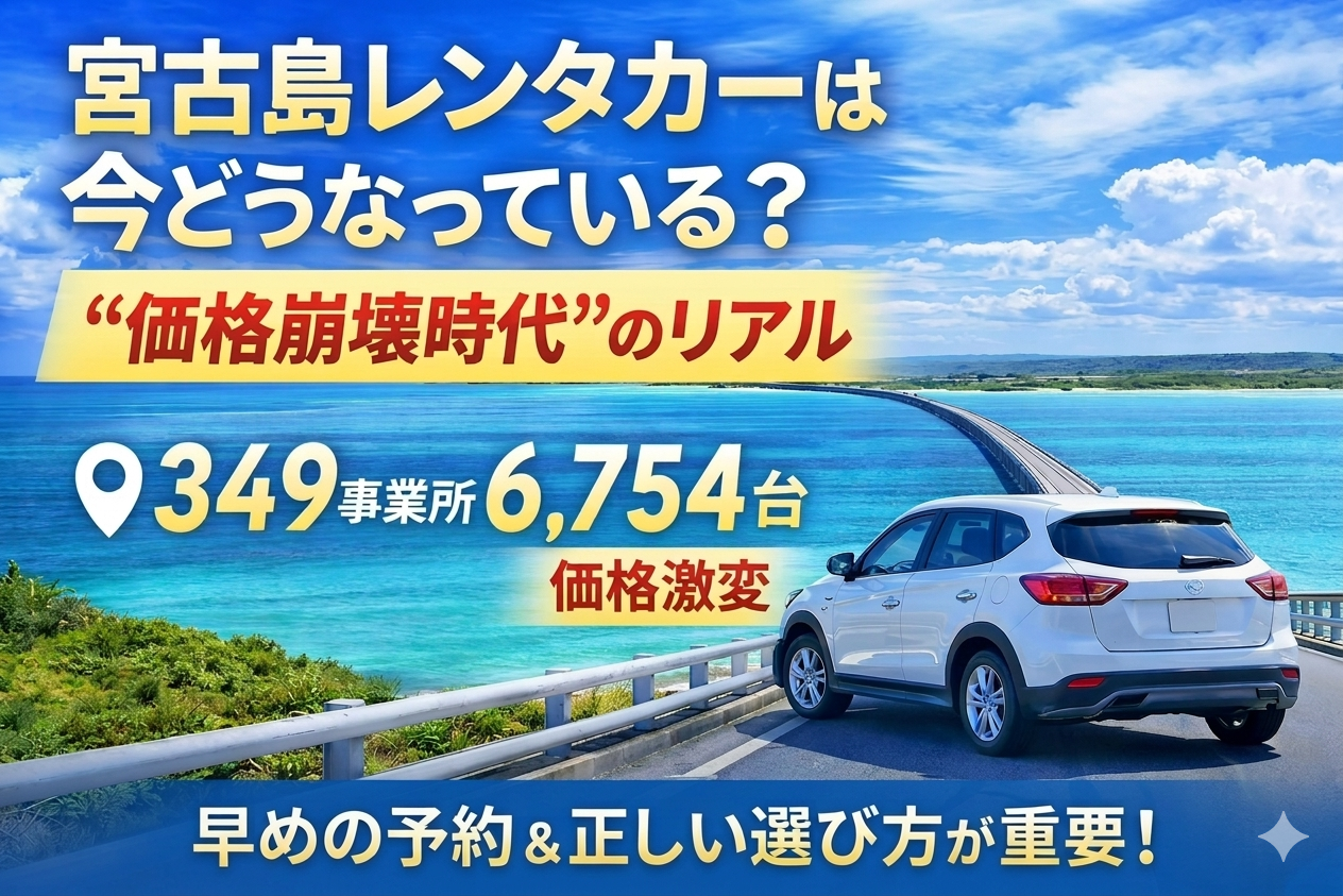 沖縄ではレンタカー料金が下落し“価格崩壊”とも言われる状況に。宮古島も349事業所・6,754台と過去最多となり、選び方が重要な時代へ。