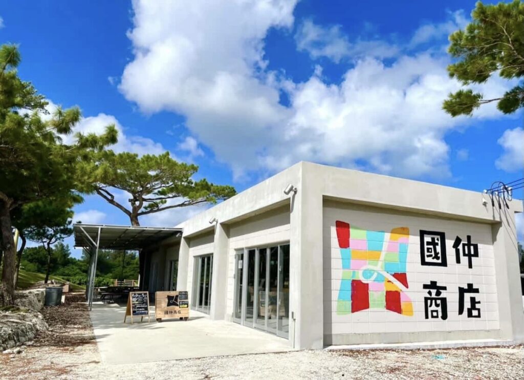 店舗外壁のカラフルなアートと「國仲商店」のロゴは、思わず写真を撮りたくなる人気スポット。伊良部島らしい開放感の中で、旅の思い出を残せる場所でもあります。