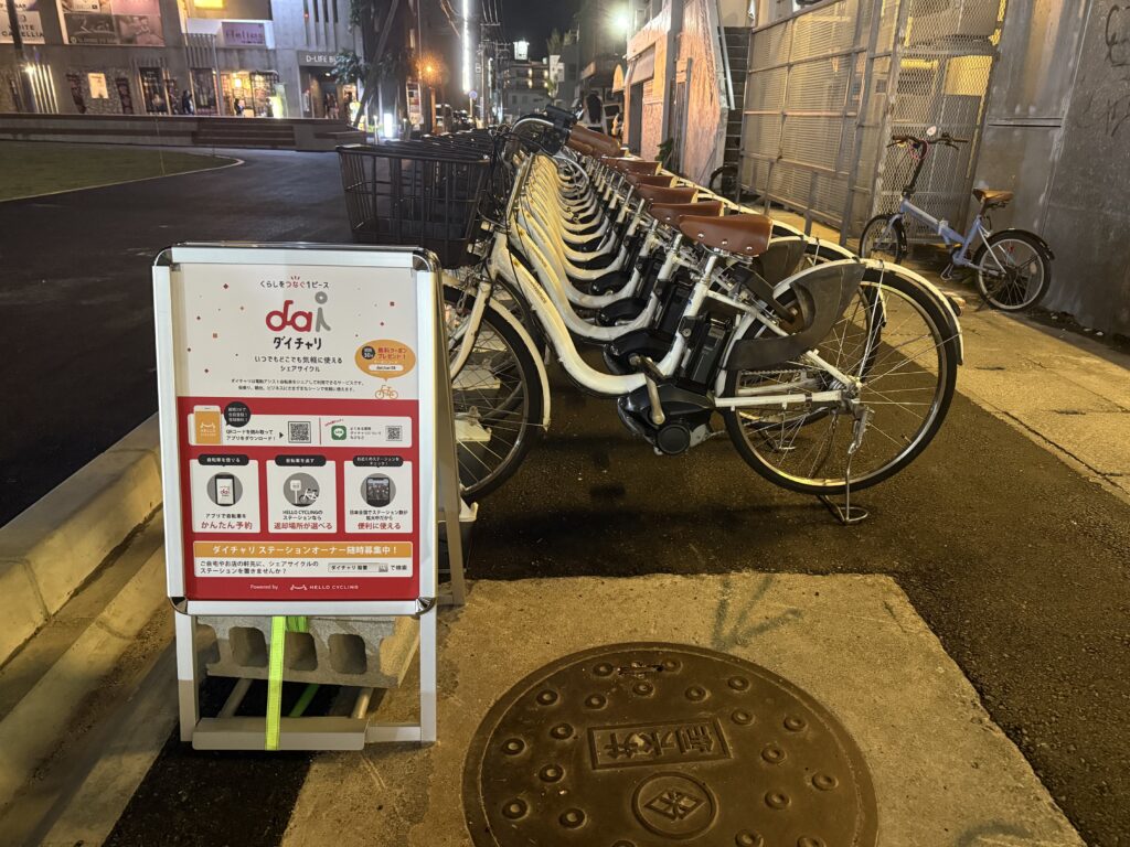 今回の写真で特に目を引くのが、ダイチャリ(HELLO CYCLING)ステーションの設置です。