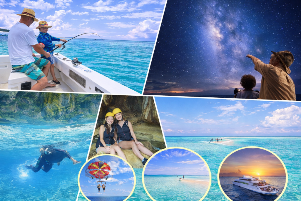 ここまで紹介したSUP・ウミガメシュノーケリング・パンプキン鍾乳洞・パラセーリング・サンセットクルーズ以外にも、宮古島には当日参加できるアクティビティがまだまだ豊富に揃っています。たとえば、海釣り・船釣りツアーは海に入らず宮古ブルーを楽しみたい方に人気で、短時間で参加しやすくファミリーにもおすすめです。ナイトツアー&星空観測は夜に時間が空いた時にぴったりで、満天の星空やヤシガニ探索など昼とは違う宮古島の魅力を楽しめます。八重干瀬(やびじ)ツアーは時間に余裕があるなら一度は体験したい宮古島最高峰クラスの海へ行ける人気体験。ユニの浜(幻の島)ツアーは干潮タイミングが合えば、その日だけ現れる絶景スポットへ行ける満足度の高いプランです。さらに島内観光・貸切チャーターなら、海遊びが難しい日でも伊良部島・17END・来間島・池間島などを巡る絶景ドライブへ柔軟に切り替えられます。このように宮古島では、海が荒れたら観光系へ、午前だけ空いたら短時間シュノーケルへ、夕方から動きたいならサンセット系へと、その日の条件に合わせて旅を自由に楽しめます。