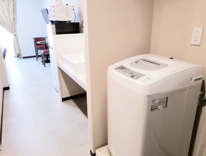 冷蔵庫、電子レンジ、キッチン、洗濯機など、生活に近い設備が揃った客室タイプも多く、数日でも1週間でも“その日から生活”を始めやすいのが強みです。