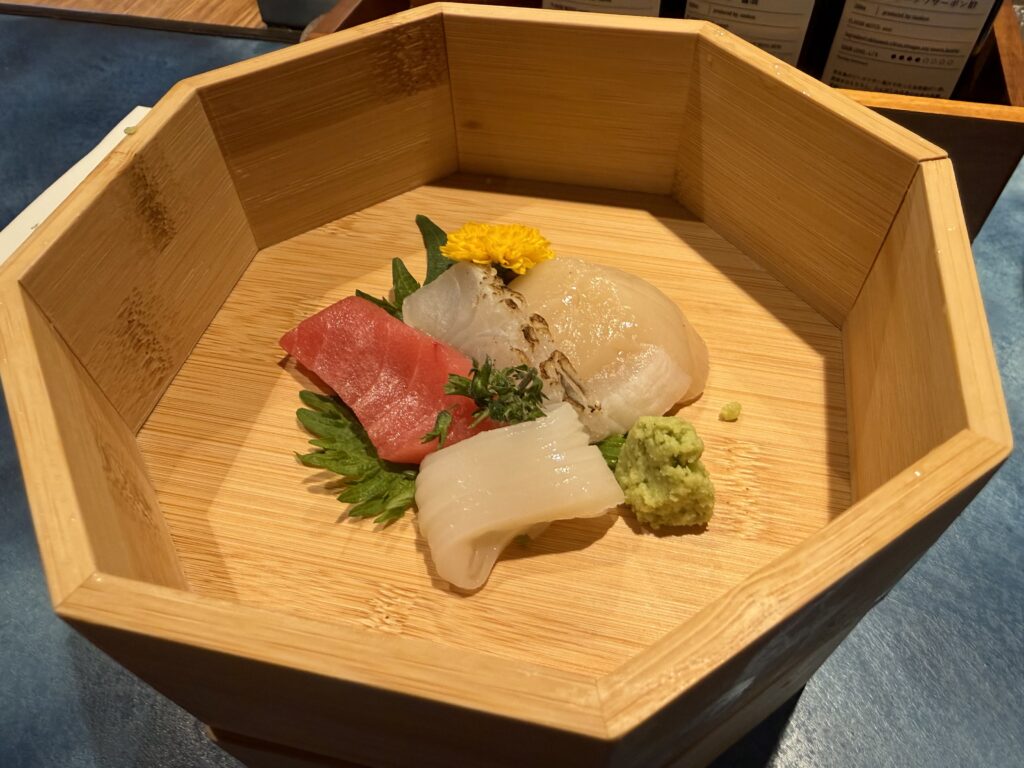 カウンター越しに料理人が一皿ずつ手渡してくれるので、「今日は何がおすすめ?」「この魚は宮古で獲れたもの?」そんな会話が自然に生まれます。