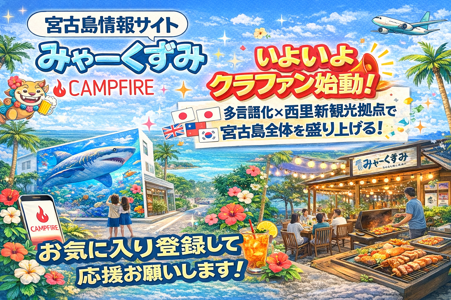 宮古島情報サイト「みゃーくずみ」の多言語化と、西里通りに新拠点「海の見えない海の家」をつくるクラウドファンディングがスタート目前。お気に入り登録で応援できる今が重要です。