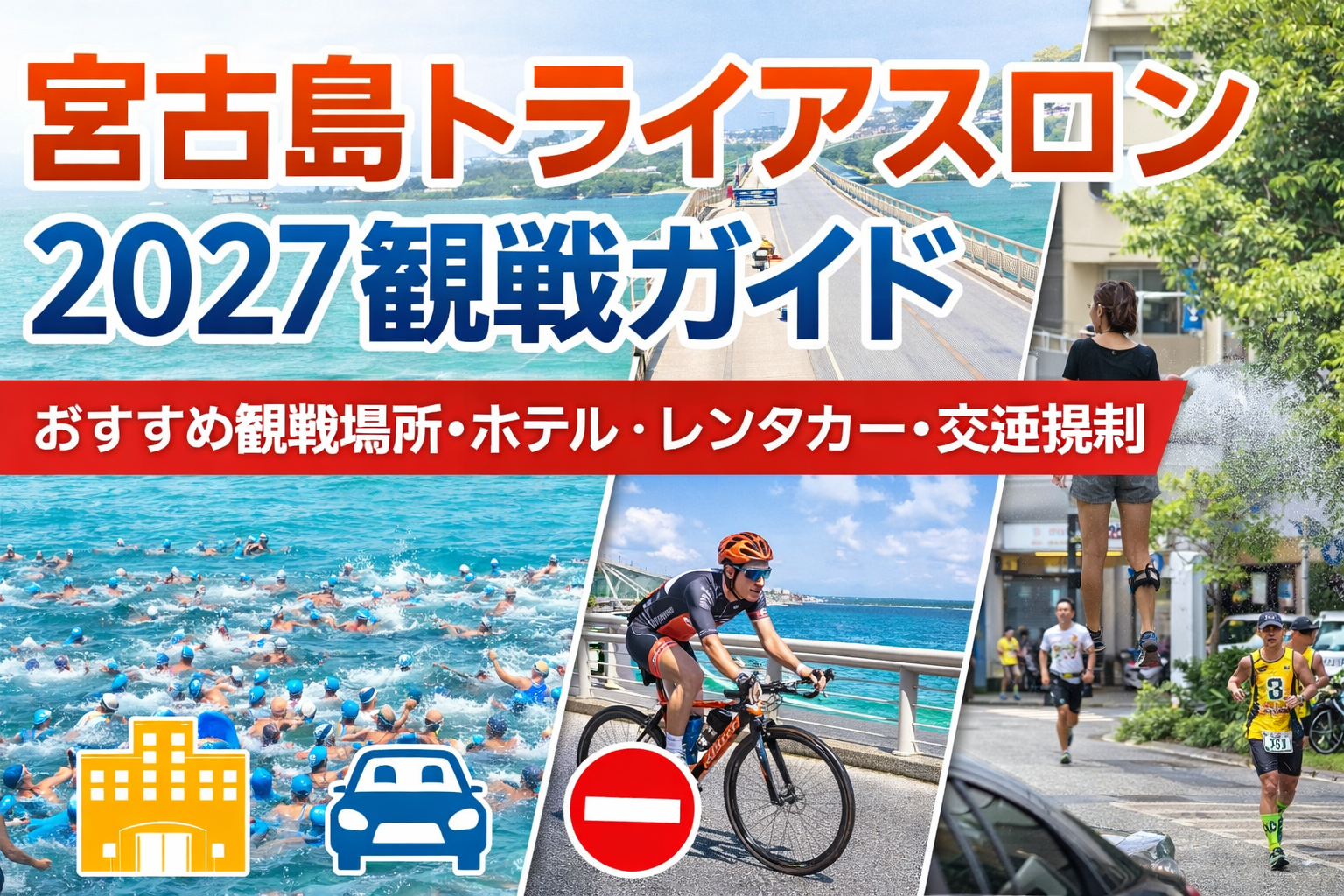 宮古島トライアスロン2027を観戦するなら、宿泊予約・レンタカー確保・交通規制確認が重要です。大会当日は島全体が会場になるため、観戦ポイント選びで満足度が大きく変わります。初めてでも分かりやすく完全ガイドでまとめました。