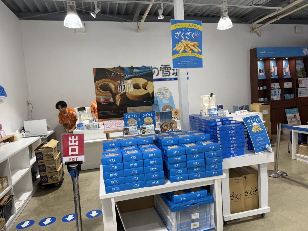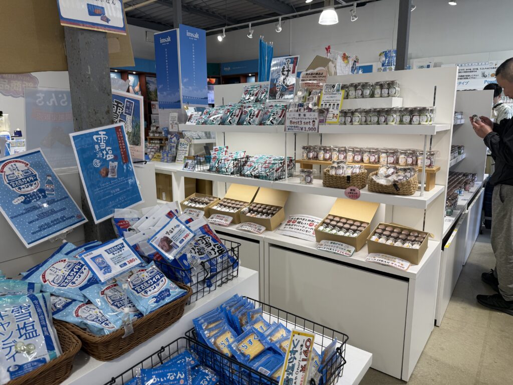 ショップの売り場写真でも分かる通り、雪塩ミュージアムのお土産コーナーは充実しています。