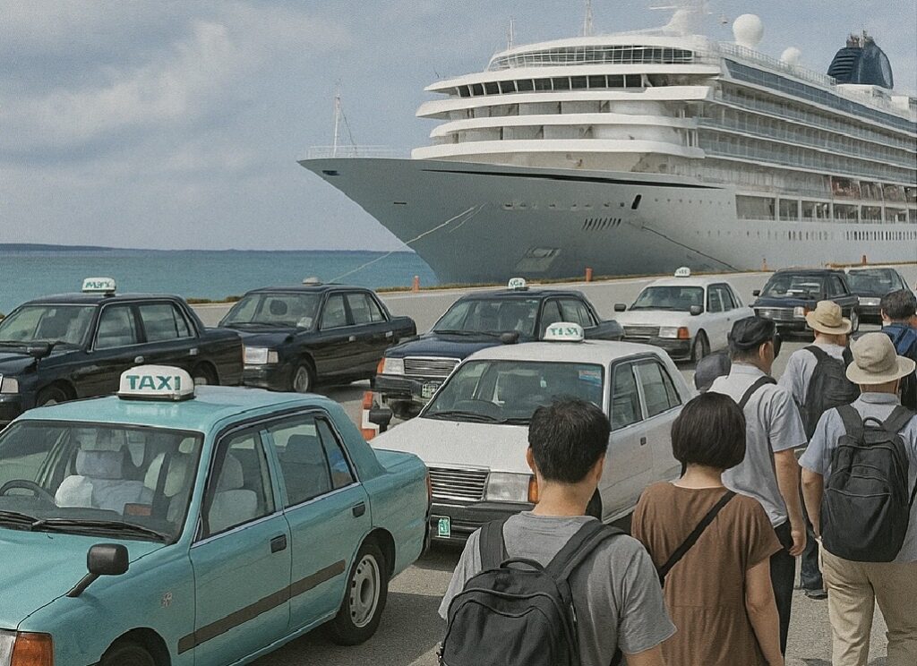 大型クルーズ船の寄港日に宮古島でタクシー不足が深刻化。空港・港・市街地で車両が足りず、観光客と地元住民の移動に影響が出る“タクシー難民”問題が課題となっています。