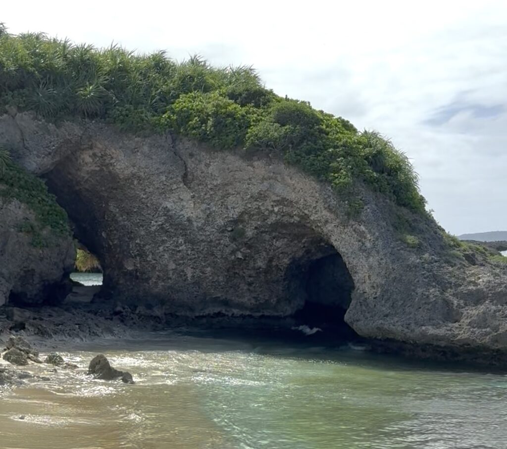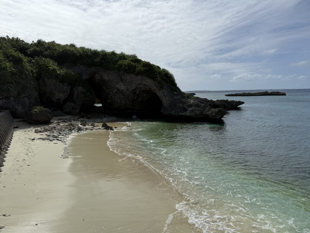 A1. 間那津海岸は、宮古島北部・狩俣(かりまた)地域にある知る人ぞ知る“隠れ家ビーチ”です。観光地化されておらず、自然のままの海岸線と波に削られた岩のトンネル(天然アーチ)が見どころ。静けさと神秘的な風景が魅力で、地元でも人気の癒しスポットです。
