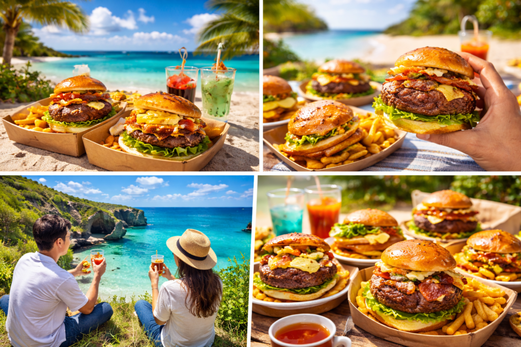 ホテルの部屋やビーチで気軽に楽しめる宮古島のテイクアウトグルメ。宮古そば弁当やカレー、唐揚げ、サンドイッチなどバリエーション豊富。容器や調理法にも工夫があり、持ち運びやすさも魅力。観光スケジュールに合わせて活用できる便利な食スタイルです。