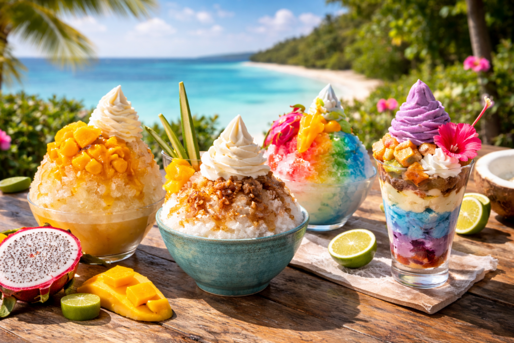 観光地を巡る途中、少し足を止めて味わうアイスやかき氷は、島時間をより豊かにしてくれます。