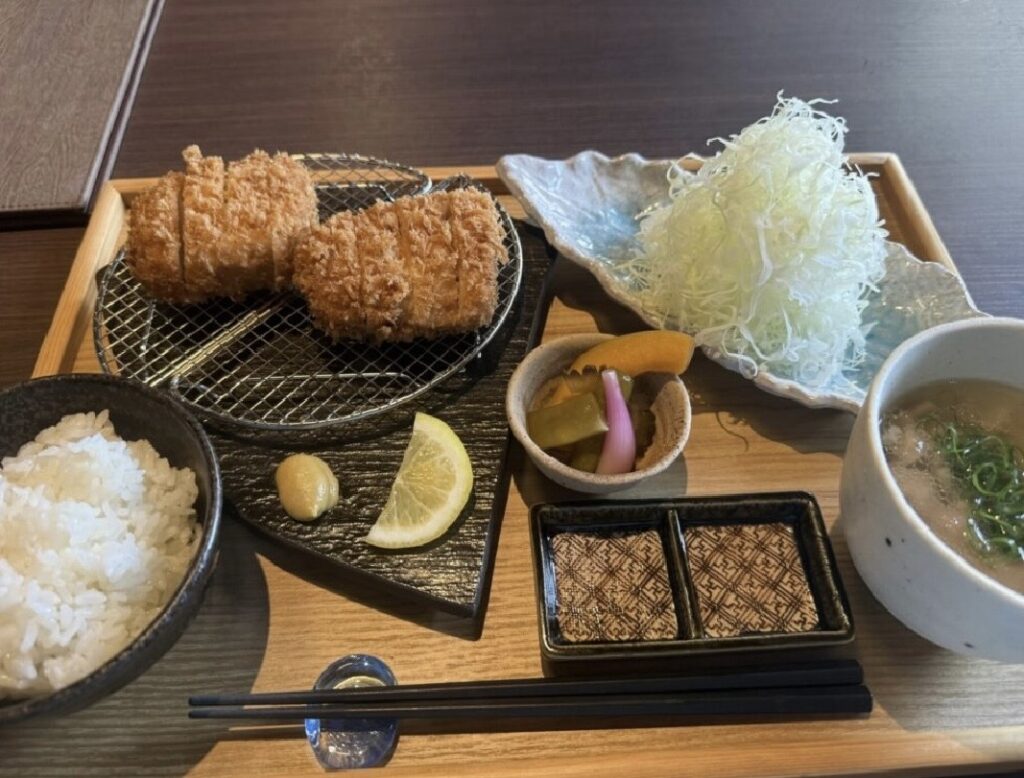 衣には極細パン粉を使用し、軽やかでサクッとした口当たり。噛んだ瞬間に肉汁が広がり、香ばしい香りとともに満足感の高い一皿を楽しめます。