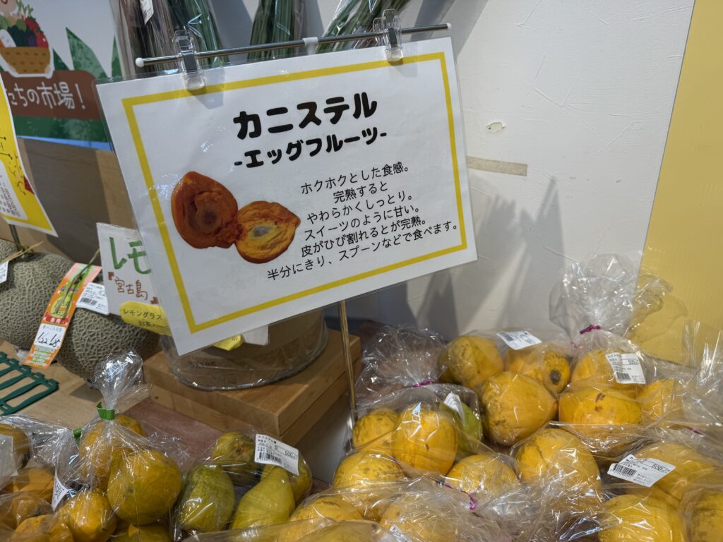 カニステルは、沖縄県内でも限られた生産者しか栽培していない非常に珍しいフルーツです。宮古島でもあまり市場に出回ることがなく、見つけたら非常にラッキーな一品です。カニステルの味わいは、卵の黄身や焼き芋を思わせるような、甘くて舌触りの良い独特の風味が特徴です。果汁が少ないため、しっとりとした食感があり、完熟した状態で食べることでその真価を発揮します。もし市場で見かけたら、ぜひお土産に手に取ってみてください。