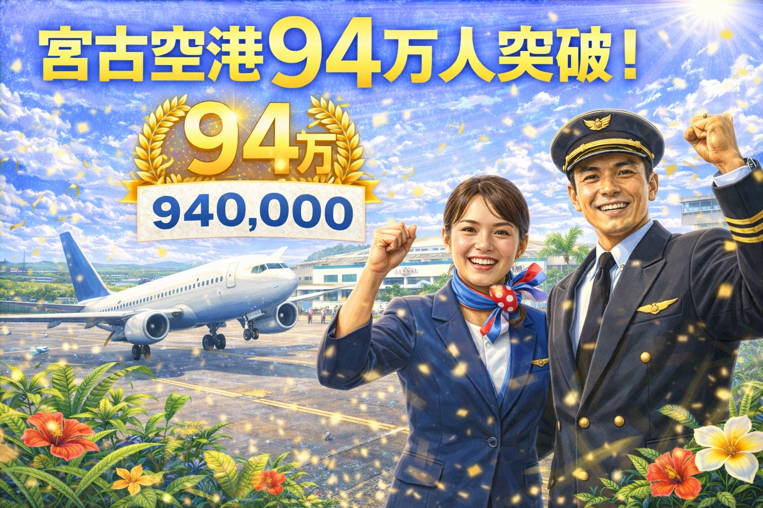 宮古島観光を支える空の玄関口「宮古空港」が、2025年上半期(1〜6月)に大きな記録を打ち立てました。乗降客数は 94万1,165人 に達し、前年同期の84万7,850人から 9万3,315人増(11%増加)。新型コロナ禍前の水準に迫るだけでなく、さらに上回る勢いを見せています。